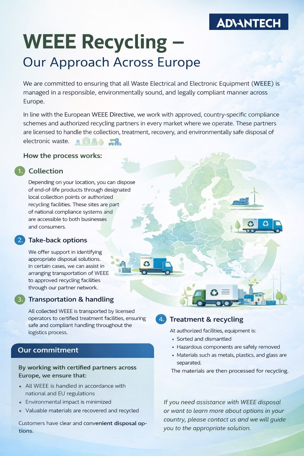 - Upon request, we will arrange for WEEE to be collected and processed by authorized recyclers in accordance with local regulatory requirements.